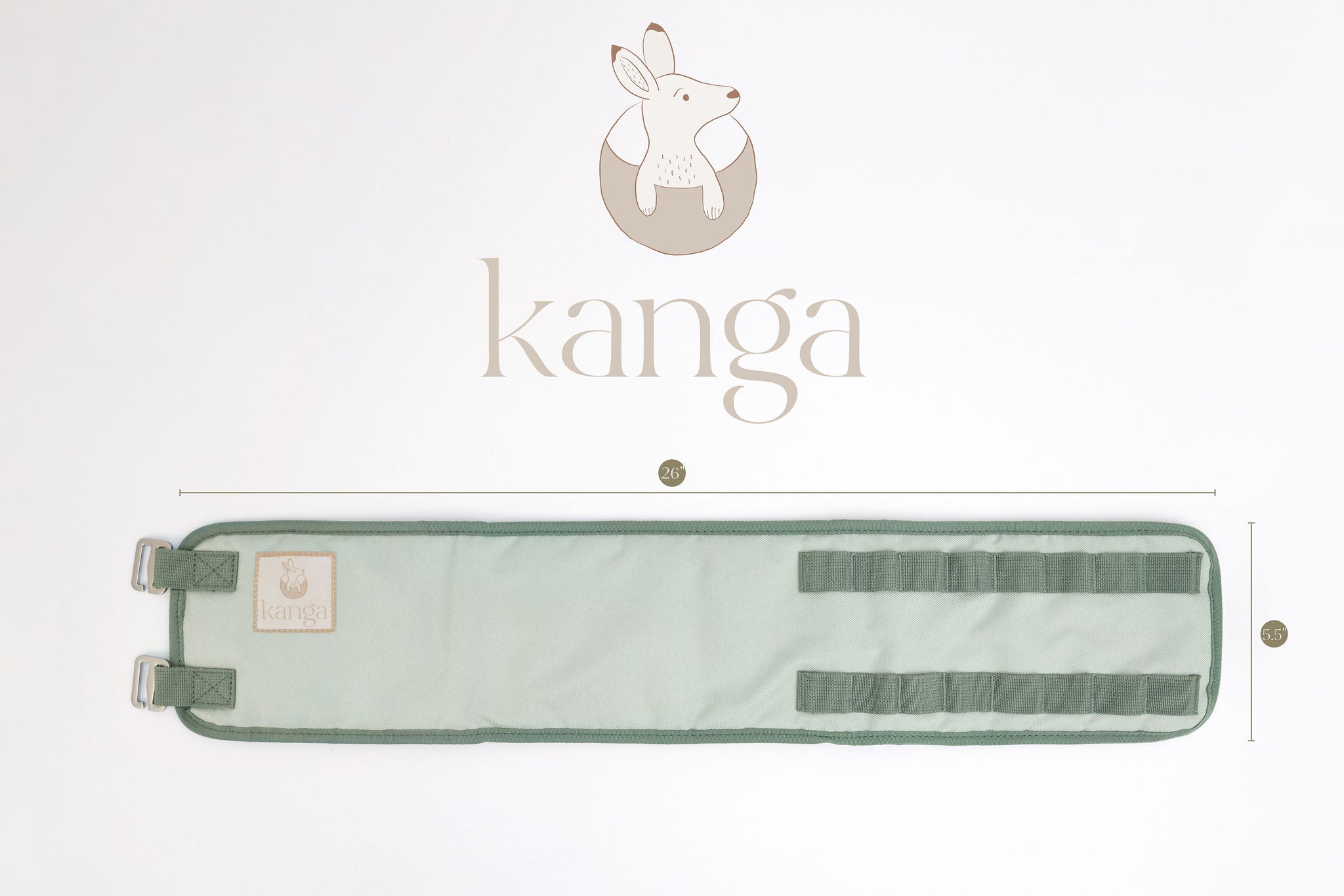 The belly belt stretches 26" in length and has 8 loops that allow the belt to be tighter or looser depending on the needs of your child and their belly size. It has been used on a baby as small as 3 months and up to 2-3 years of age. If you receive The Kanga and it does not fit your child, we offer free returns within 14 days of purchase with no damage to the product. Please email info@thekangababy.com for more information or if you have additional questions.
