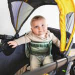 Kanga features a sturdy and reliable design, complete with a secure hook and loop system to keep your baby safely seated and sitting upright. Say goodbye to worrying about wiggly little ones and place them in the pouch for a safe ride in The Kanga.